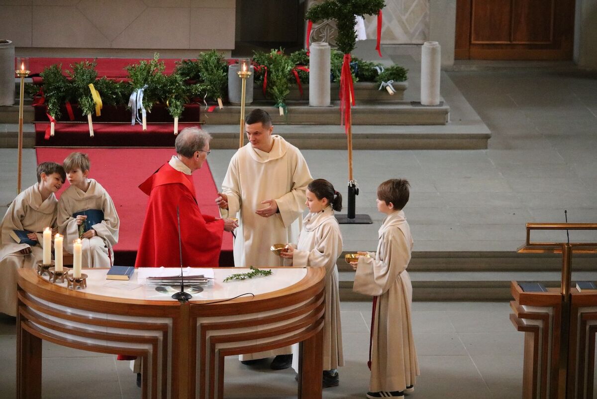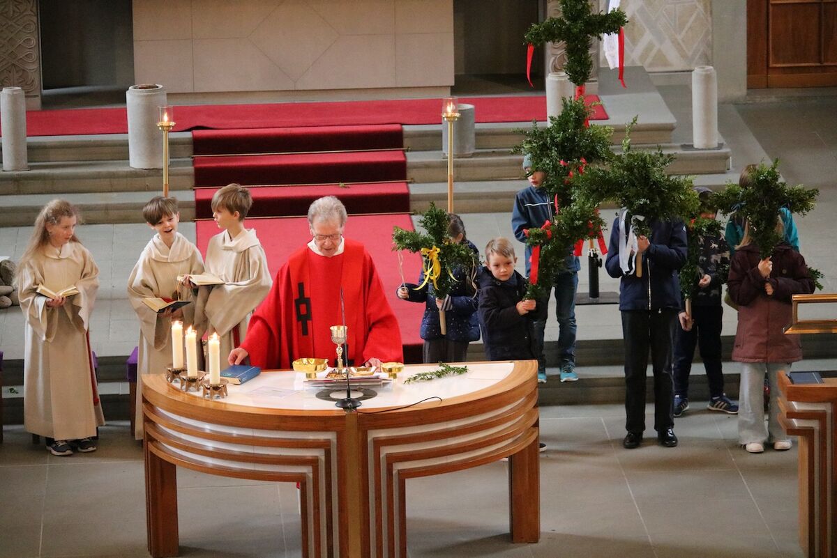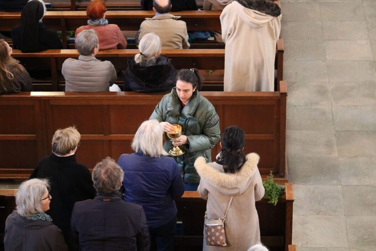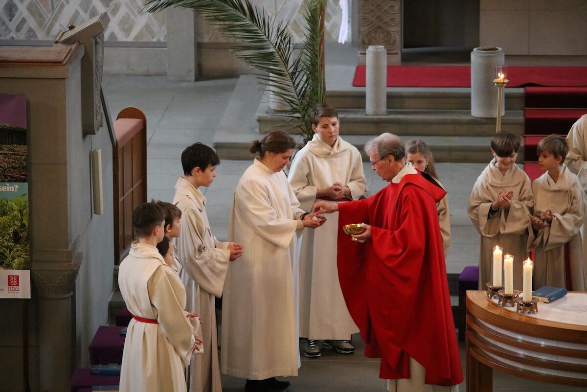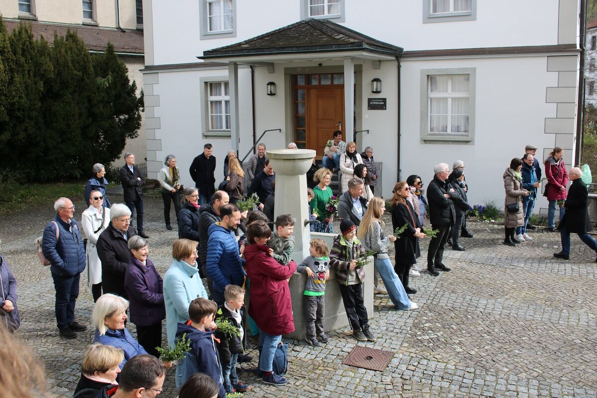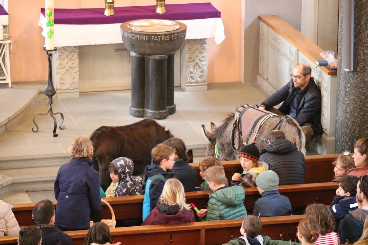 Mit selber gebundenen Palmkreuzen und den Eseln der Familie Brändle-Benz von der Beckenhalden zogen wir in die Kirche St.Georgen ein und feierten die Ankunft von Jesus in Jerusalem.
