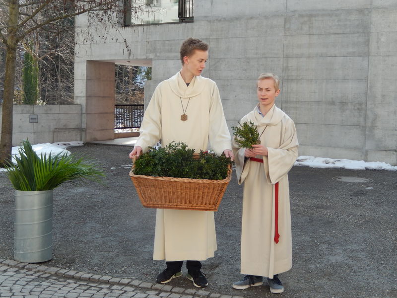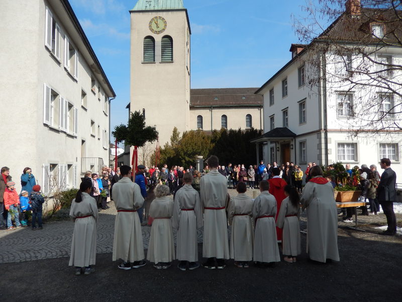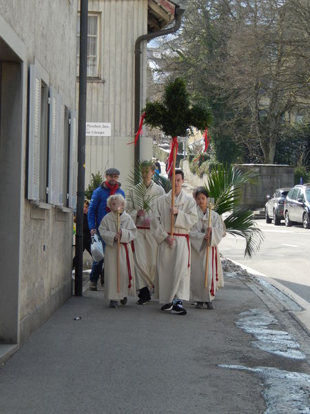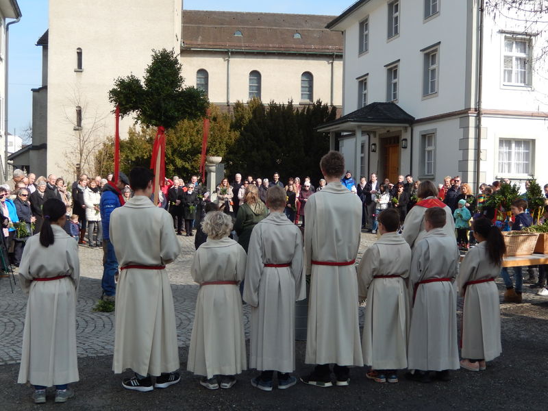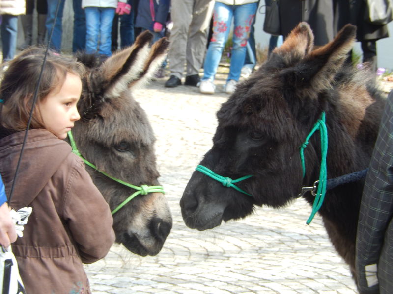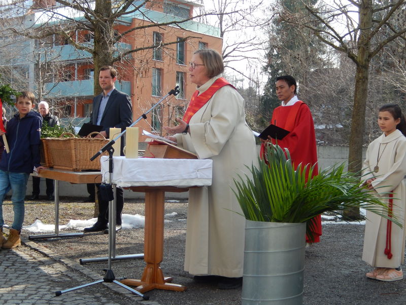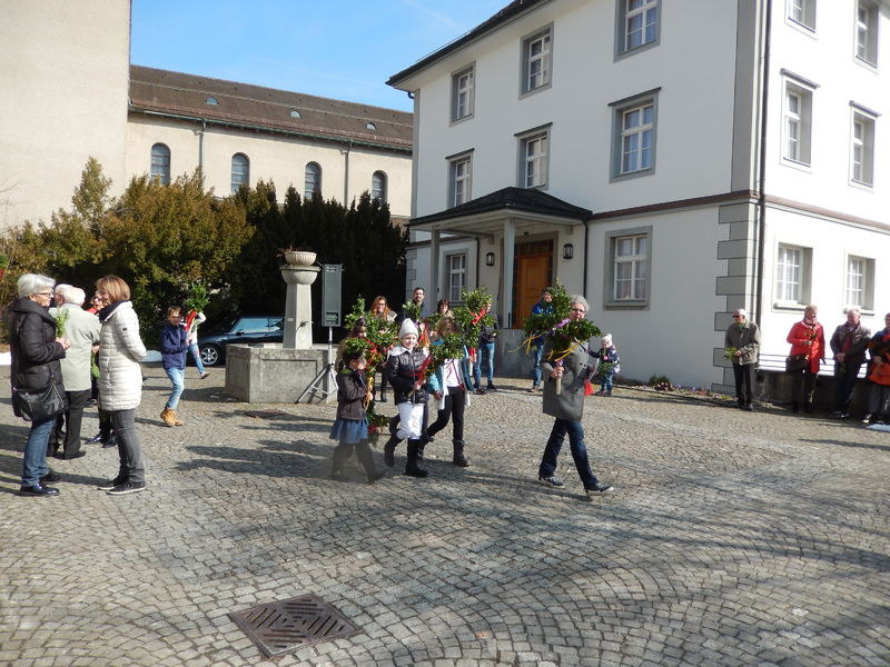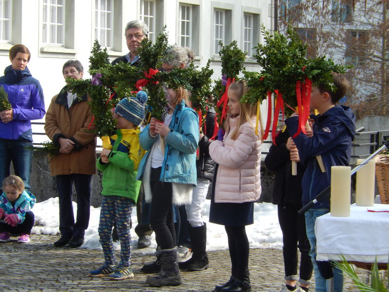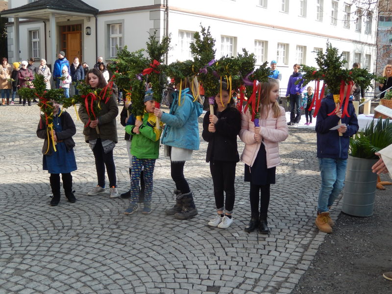 Am Palmsonntag feierte die Pfarrei St. Georgen den einzug Jesu mit speziellen Gästen: Nana und Joli, zwei Eselinnen, die mit "ihren" Gedanken auch die Predigt hielten.